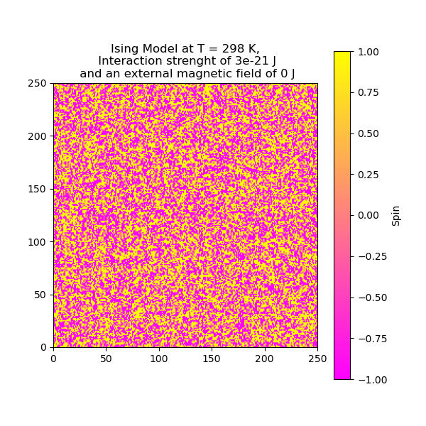 This project is a Monte Carlo simulation of the Ising model, a mathematical model of ferromagnetism in statistical mechanics. The program simulates the evolution of a 2D lattice of spins according to the Metropolis algorithm, and it allows the user to change the temperature, the size of the lattice, the interaction strength between spins and the intensity of external magnetic field. The program is written in Python and uses Jupyter Notebook for visualization.